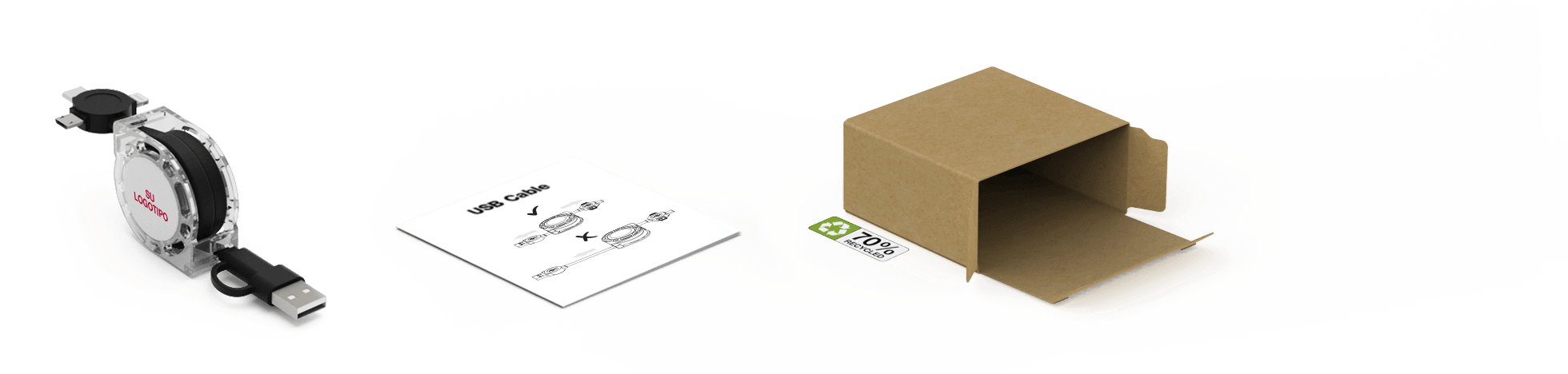 El cable USB Motion, presenta un área de personalización amplia en ambos lados, lista para la fotoimpresión de tu imagen, logo, eslogan, detalle del evento y más. El Motion admite transferencia de datos y capacidad de carga y es compatible con todos los dispositivos principales debido a las 4 opciones de conector, incluyendo un conector USB estándar, Micro-USB, USB-C y un adaptador Lightning. Puede extender y retraer los cables tirando de ambos extremos al mismo tiempo. Para un toque de madera, echa un vistazo a nuestro modelo .
