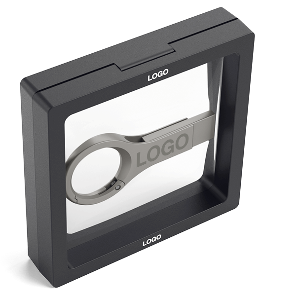 Our Snap Frame Small accessory is an eye-catching way to present and give away your custom branded promotional products. You can open and close the box via the secure clip. The transparent plastic film holds the product in place, and the cardboard outer-edges can be branded with your logo and more. The Snap Frame Small comes in a cardboard box sleeve that can also be branded with your logo.