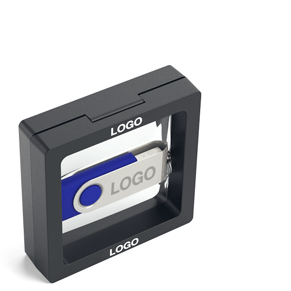 Fabricado en plástico resistente translúcido, el estuche magnético puede adaptarse a una gran variedad de productos. La tapa se mantiene bien cerrada por dos pequeños imanes. El interior del estuche magnético se presenta con la forma del producto escogido. La parte superior del estuche puede serigrafiarse con su logotipo; además el marcaje frontal del USB también es visible a través de la tapa transparente.