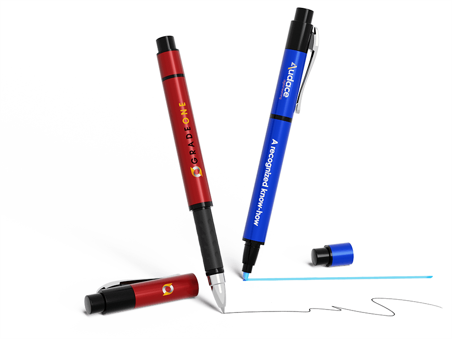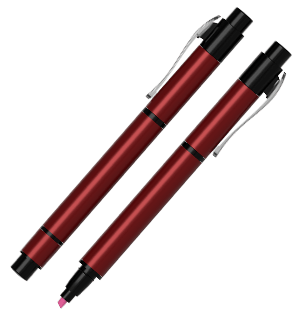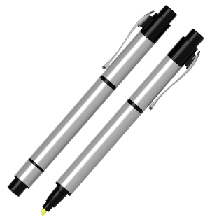 El Accent incluye un suave bolígrafo y un práctico subrayador en un mismo modelo. Podemos añadir tu logotipo a ambos lados del cuerpo y también en el tapón. El Accent también cuenta con un práctico clip y es muy suave al tacto, lo que garantiza su uso diario y la máxima exposición de tu marca.