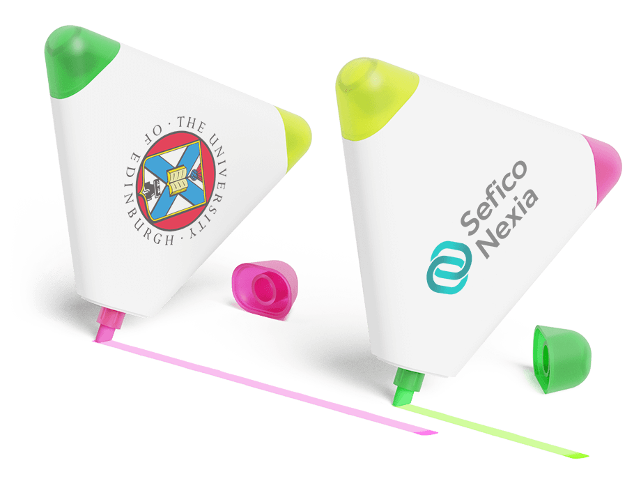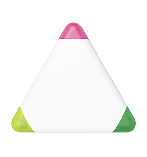 Nuestro marcador fluorescente Triple cuenta con 3 colores diferentes en un solo modelo: amarillo, verde y rosa. Su llamativa forma triangular lo convierte en un artículo de regalo muy popular. Podemos personalizar tu logotipo, eslogan, etc. a ambas caras del Triple, lo que le proporciona una fantástica exposición de marca en un producto que se guardará y utilizará con frecuencia.