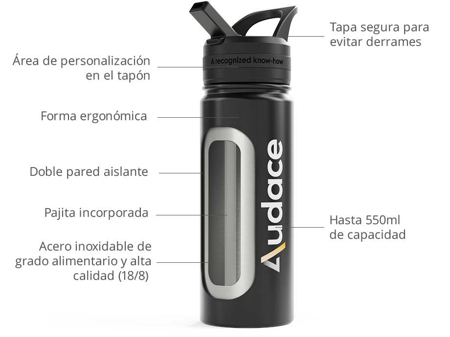 También cuenta con un asa de plástico moldeado sin BPA, tapón con cierre de rosca y pajita incorporada, lo que facilita el transporte y hace que beber sea muy cómodo. Todos nuestros productos para bebidas cuentan con una garantía de 2 años para mayor tranquilidad.