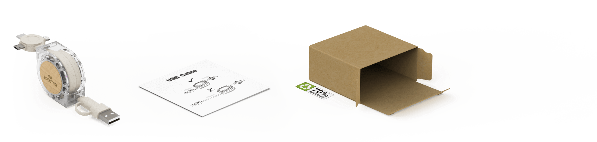 El cable está fabricado con bioplástico de paja de trigo, ofreciendo una solución ecológica que se alinea con las prácticas sostenibles de su marca. El área de impresión está hecha de madera certificada FSC para continuar con el tema de la sostenibilidad. Rellene hoy mismo un Presupuesto rápido para recibir una lista de precios personalizada y empezar a personalizar sus bujes Motion Wood