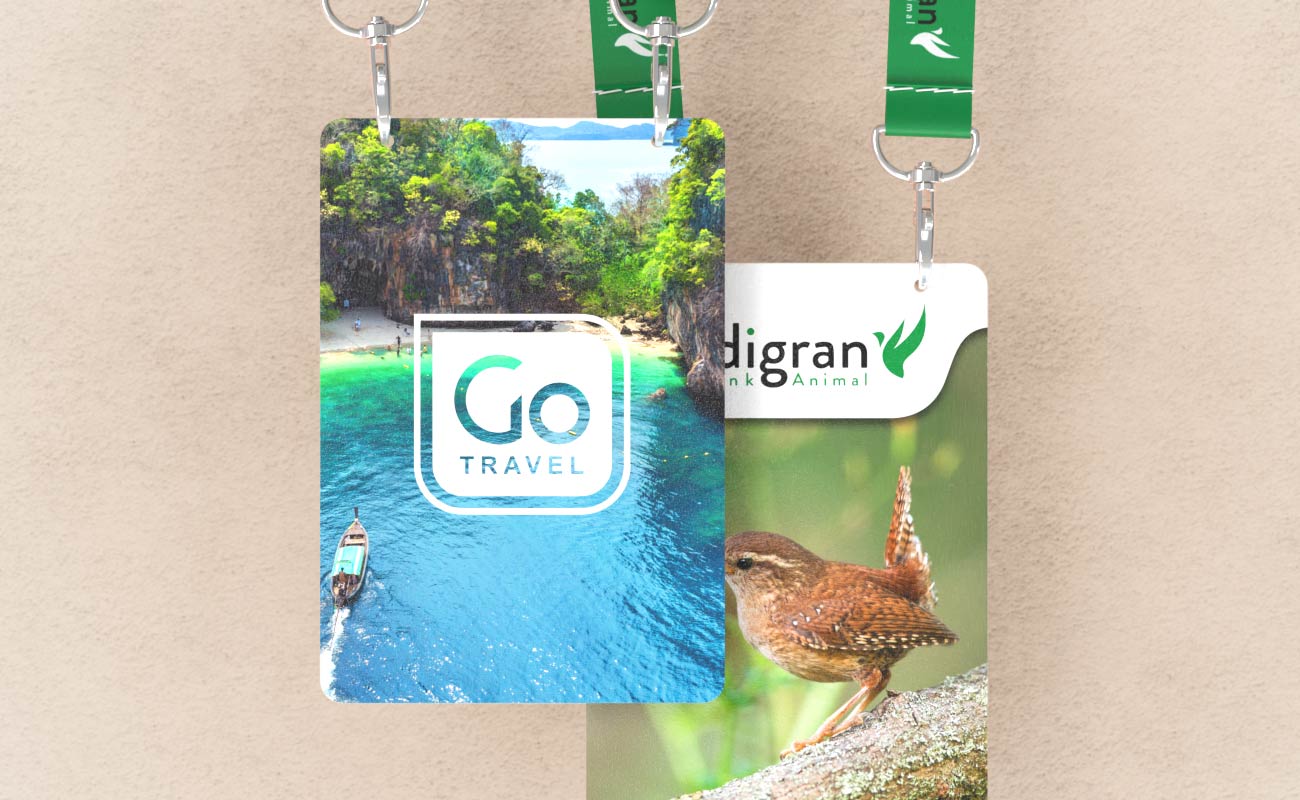 Destaca con nuestra tarjeta de PVC más grande. Presenta dos ojales en la parte superior y se personaliza por las dos caras. Este accesorio, elegante y profesional, es imprescindible para oficinas, eventos, ferias y mucho más.