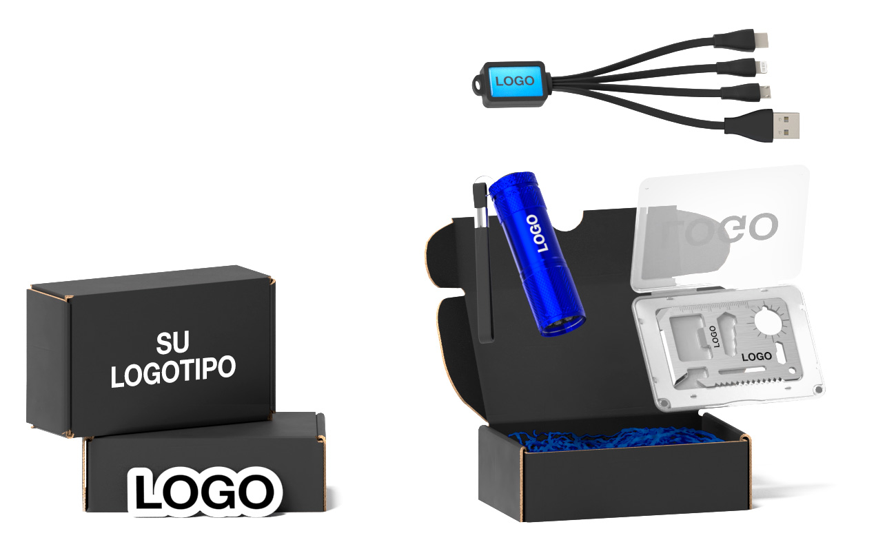 El Gear es un práctico pack de regalo que incluye una multiherramienta, una linterna y un cable USB que pueden personalizarse con tu marca. La caja de regalo también incluye una zona dedicada a tu logotipo. También podemos incluir una pegatina con tu logotipo. Ponte en contacto con nosotros hoy mismo para consultar precios, personalización, plazos de entrega y opciones de combinación de modelos.