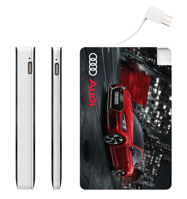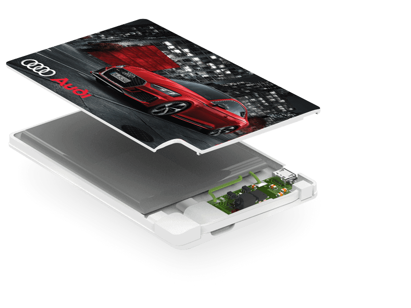 Nuestra batería Card puede personalizarse completamente con el logotipo de su empresa, eslogan o cualquier otro diseño, garantizando la máxima exposición de la marca cada vez que se utilice. La gran área de impresión en la parte delantera y trasera permite la personalización a todo color con nuestro servicio de impresión fotográfica. Las imágenes de alta resolución son duraderas, por lo que su logotipo se mantendrá nítido uso tras uso.