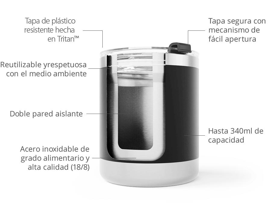 Además de ser estupenda para tus usos promocionales, la Crew es igual de funcional y práctica para quien la reciba. Clientes, empleados y otras partes interesadas de su organización querrán utilizar esta taza de viaje a diario.